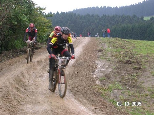 sich die erwartete Wurzelpassage als extrem nass und schlammig. Eine freie Linie suchen und dann auch noch unnötigerweise ins größte Wasserloch gefahren. Die Scheibenbremse am Vorderrad tauchte komplett unter. Schnell den Fuß rechts in den Schlamm und versuchen das Rad rauszuziehen. Dann folgten mehrere Abfahrten, von denen wiederum zwei steile sehr schlammig und rutschig waren. Meine Devise lautete: bergab nichts unnötig riskieren - einen Marathon gewinnt man durch bergauffahren!
