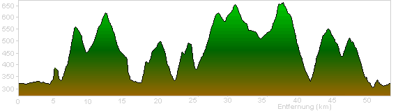 kleinen Bildchen. Ein Blick auf das Höhenprofil verrät: ständiges, steiles Bergauf und Bergab. Und