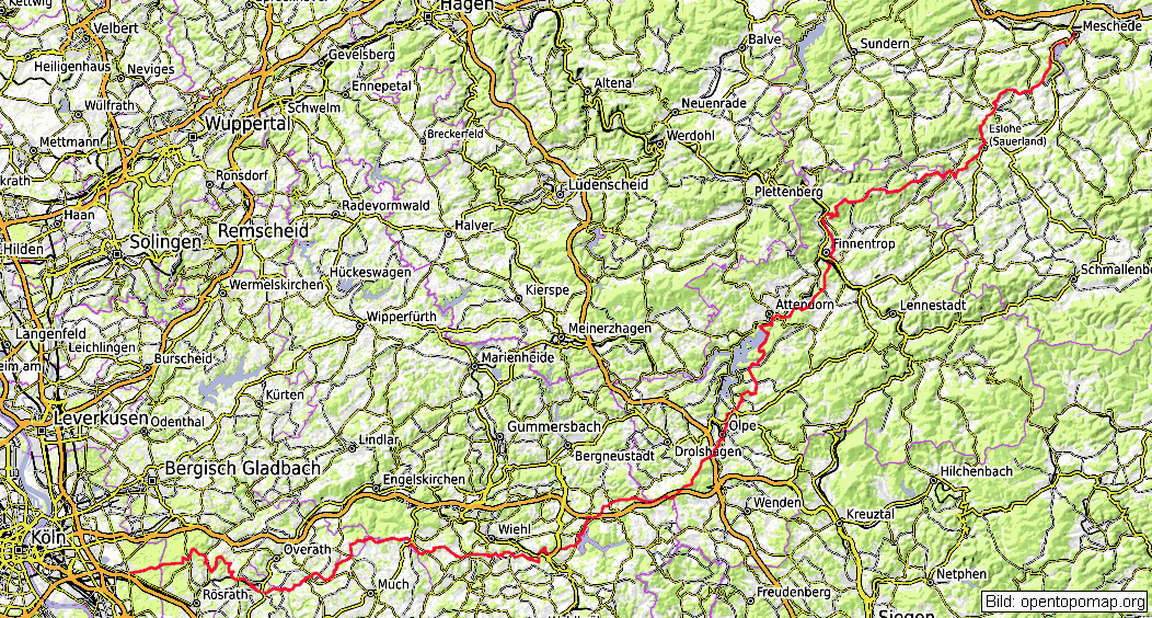 überquert haben. Nun geht es runter nach Windfus, dann Blankenbach und wieder über die A4, am Wiehltalstausee