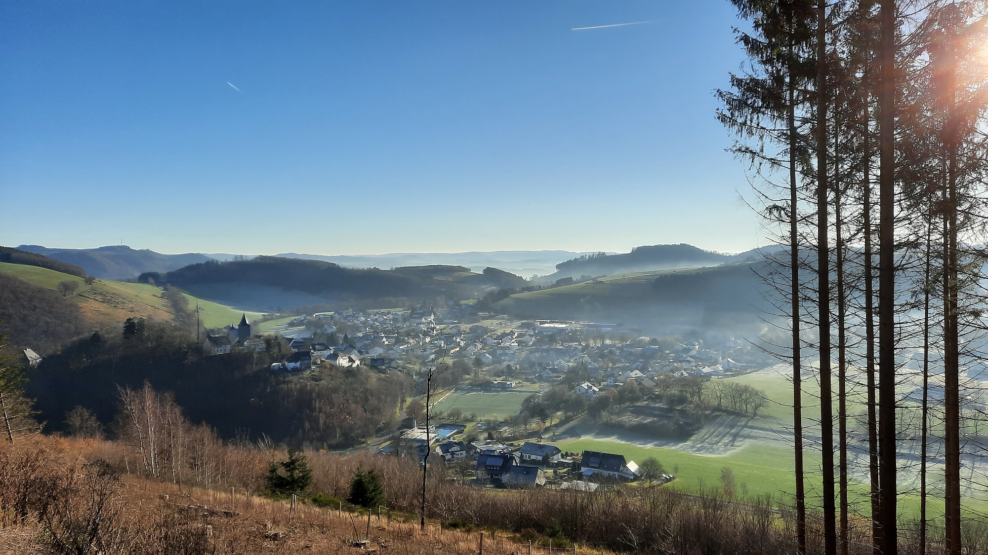 Die Tour führt zunächst auf die Homert. Dazu im Ort geradeaus auf der Landstrasse