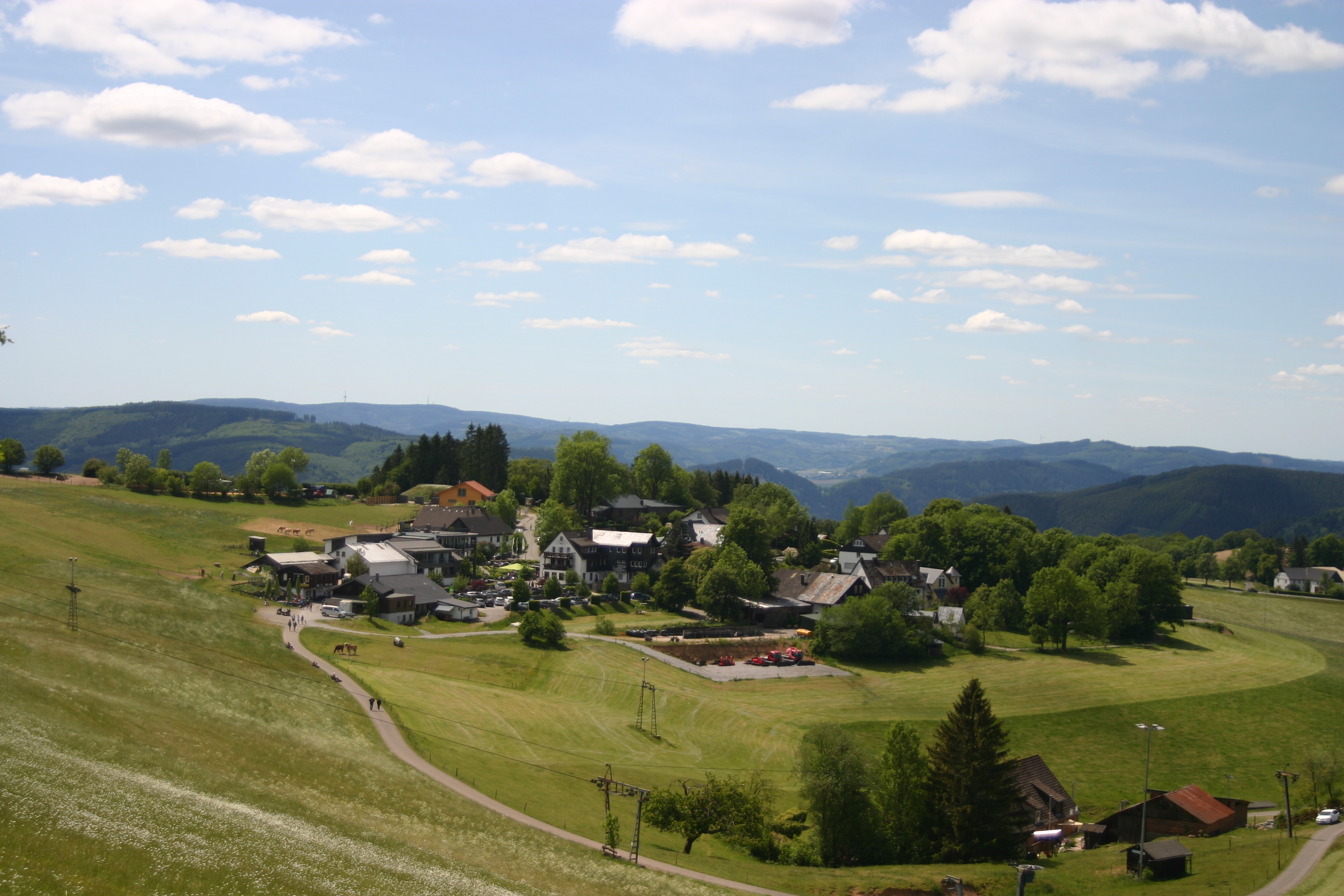 Vom Parkplatz vor der Schützenhalle aus geht es links durch den Ort in Richtung Wenholthausen. Nach 200m biegen Sie rechts ab und es geht auf geteertem Wirtschaftsweg bergauf. Nach weiteren 800m gehts es links rein (immer noch asphaltiert) und in einem langgezogenen Rechtsbogen den Estenberg hoch. Immer auf dem Weg geradeaus halten, bis sich kurz vor dem Gipfel der Schotterweg teilt. Wir halten uns links und nach ca. 450m geht es durch den Tannenwald scharf rechts hoch. Jetzt sind wir auf dem Sauerland-Höhenflug, dem Fernwanderweg mit gelb markiertem "H". Diesem Weg folgen wir, hoch auf die "Homert", dem höchsten Punkt des gleichnamigen Naturparks.