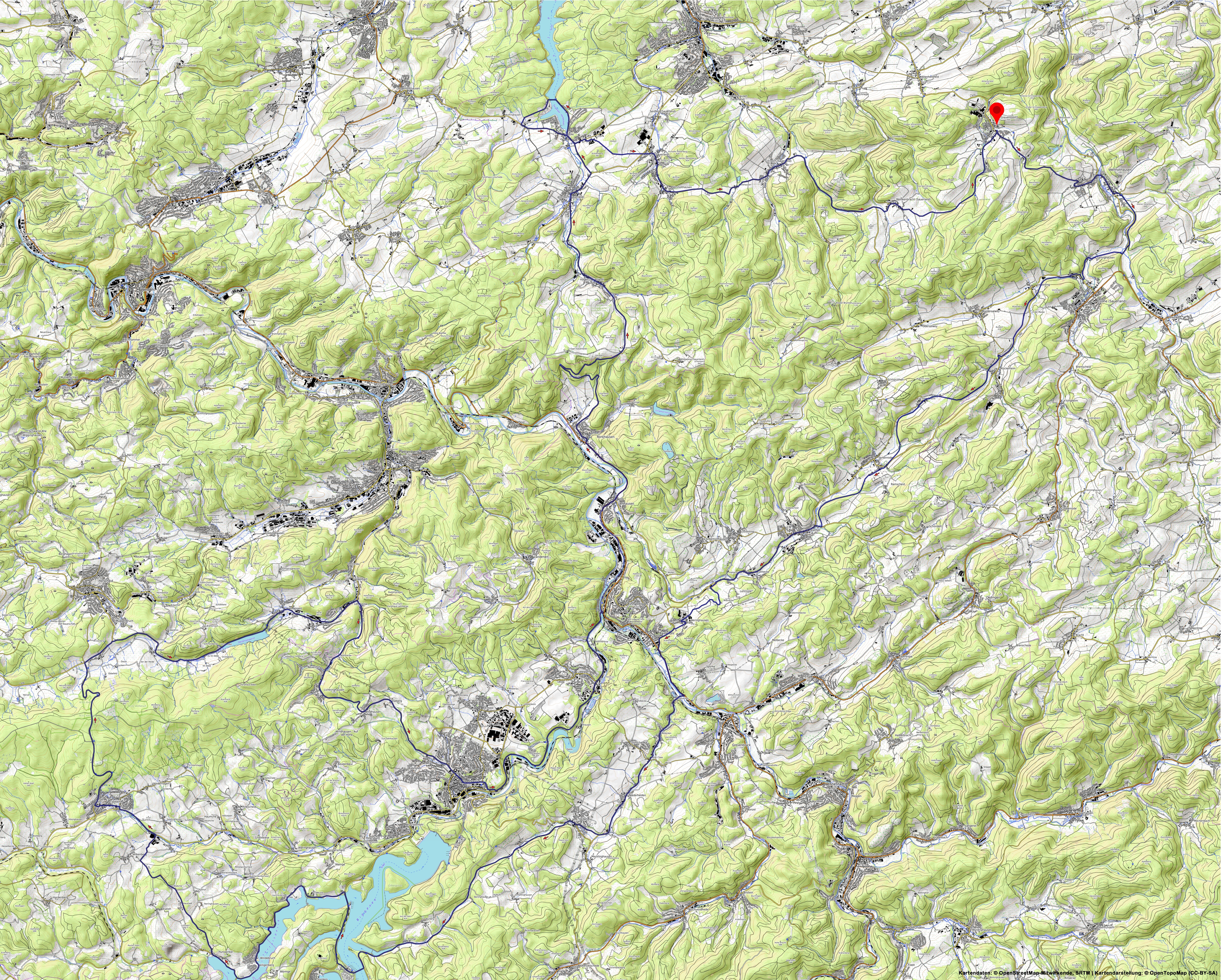 Hier erreichen wir den Biggesee, immer weiter auf der Straße bleiben bis zur Biggeseebrücke am Sondener Kopf. Dort rechts und dann wieder rechts, parallel zur L512 am Biggesee vorbei. Nach der jetzt dritten Biggeseebrücke links rein und es geht komplett an der Listertalsperre entlang bis in den Ort Hunswinkel. Hier biegen wir rechts ab, Richtung Valbert. Einen sehr gering befahrenen Anstieg, vorbei an Eseloh, runter bis kurz vor den Ort Wilkenberg, dort rechts runter bis zur L539. Jetzt links, Richtung Meinerzhagen und nach 2,3km verlassen wir diesen vielbefahrenen Abschnitt wieder und biegen links auf die Brücke zur Nordhelle. (In Valbert machen wir an dieser Stelle in Ortsmitte immer eine Rast). Es geht oberhalb von Valbert nun bergauf zum Cima Coppi, der Nordhelle, mit 625 m üNN der höchste Punkt.