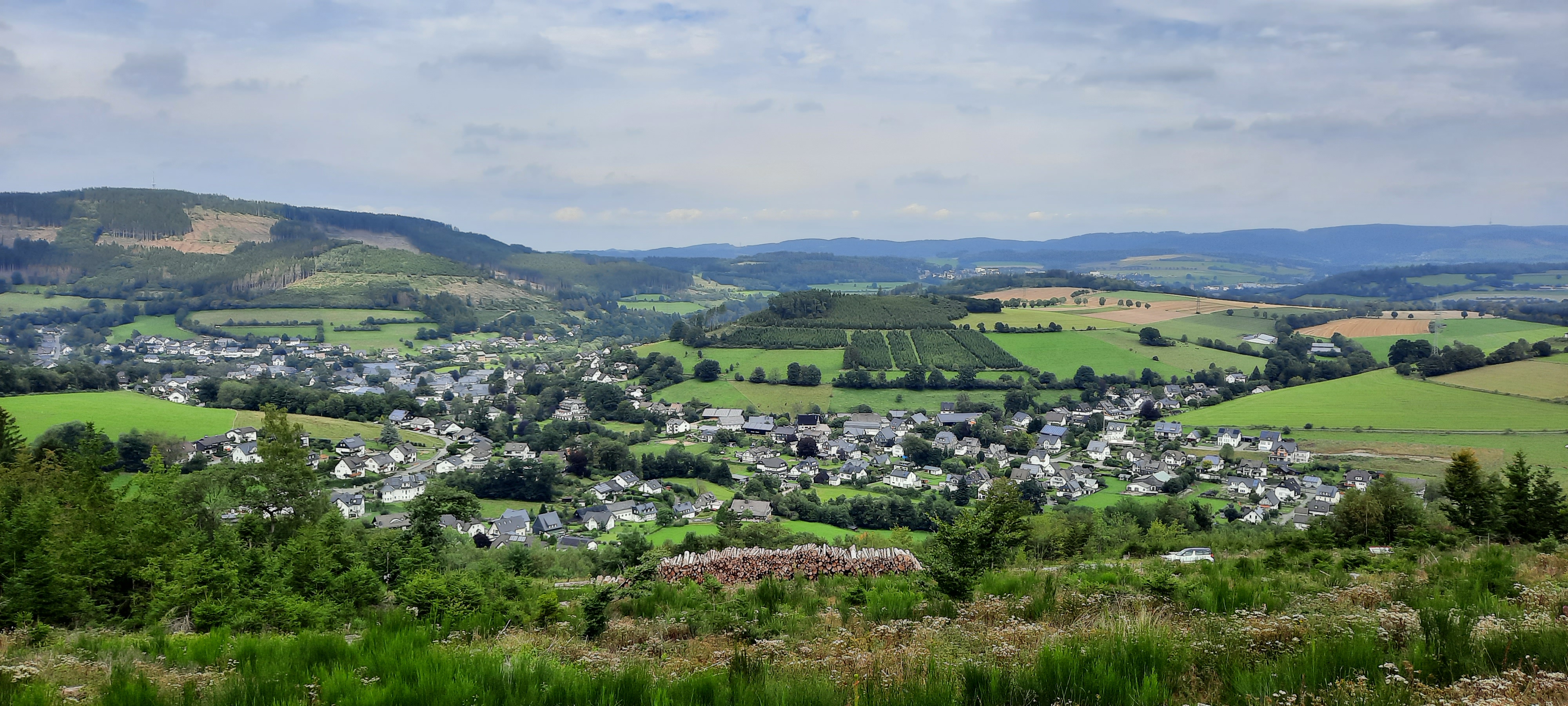 Die Fahrt beginnt in der Ortsmitte von Grevenstein. Wir halten uns, den Richtungsschildern folgend, nach Wenholthausen. Hier dürfen wir die ersten 5km rollen, ab dem Sägewerk bietet sich ein herrlicher Blick über das Wennetal und wir erahnen etwas von den Höhenmetern, die uns erwarten.