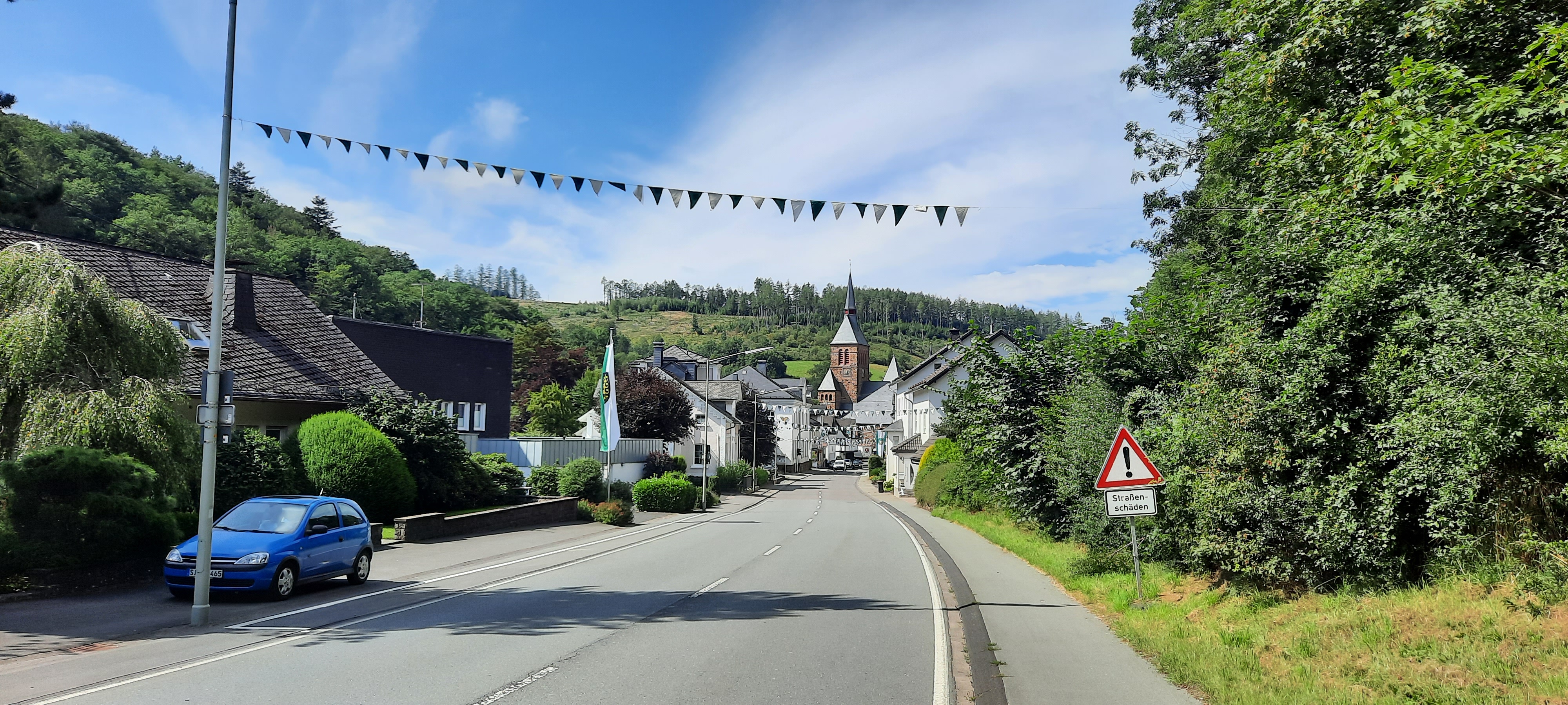 Unten imTal, ab der Kreuzung, verläuft rechts ein Radweg parallel zur B236, dem wir bis zur Ortsmitte Fleckenberg folgen. An der Kreuzung
